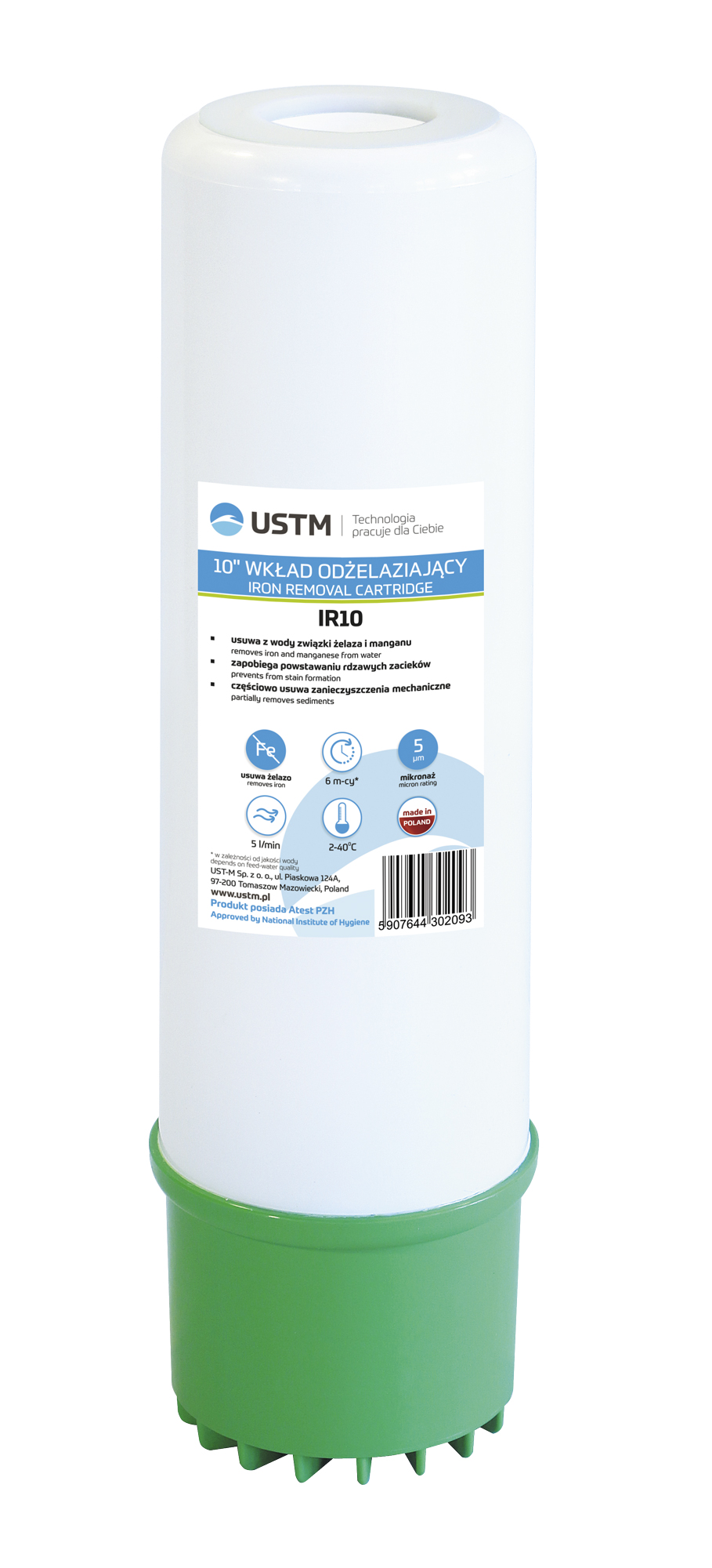 Filter za odstranjivanje željeza. Sadržava granulat sa svojstvima koji omogućuju uklanjanje iona željeza iz vode. Uklanja iz vode specifičan, neugodan okus i miris metala.
